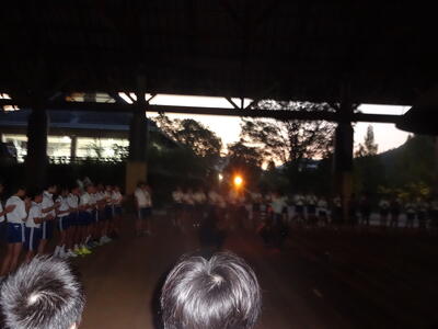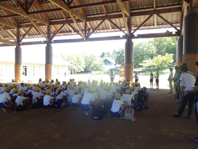 自然学校スローガン「自立 挑戦 協力 新たな自分との出会い 友だちの良さを見つけよう 最高の自然学校へ!」のもと、個人、仲間、自然について目標を持って行いました。火おこしや野外炊飯、キャンプファイヤーをはじめ、