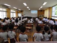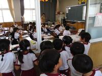 昨年度から、小野東幼稚園との交流が活発になりました。今年は、園児たちが学校見学に来ました。1・2年生や音楽室の授業を参観し、理科室や図書室などの特別教室を見学しました。