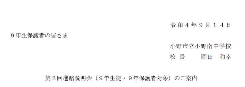 第2回進路説明会(9年生徒・9年保護者対象)のご案内