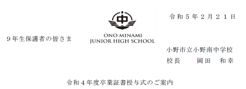 詳しくはこちらをクリックしてください。小野南中卒業式案内