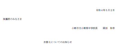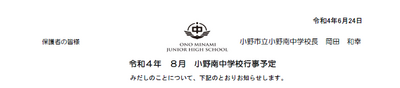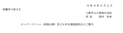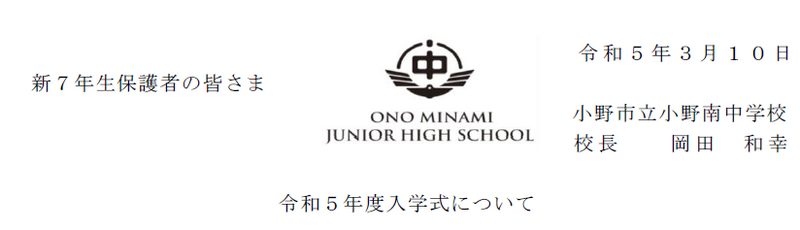 令和4年度小野南中卒業式案内について掲載いたしましたのでご覧ください。