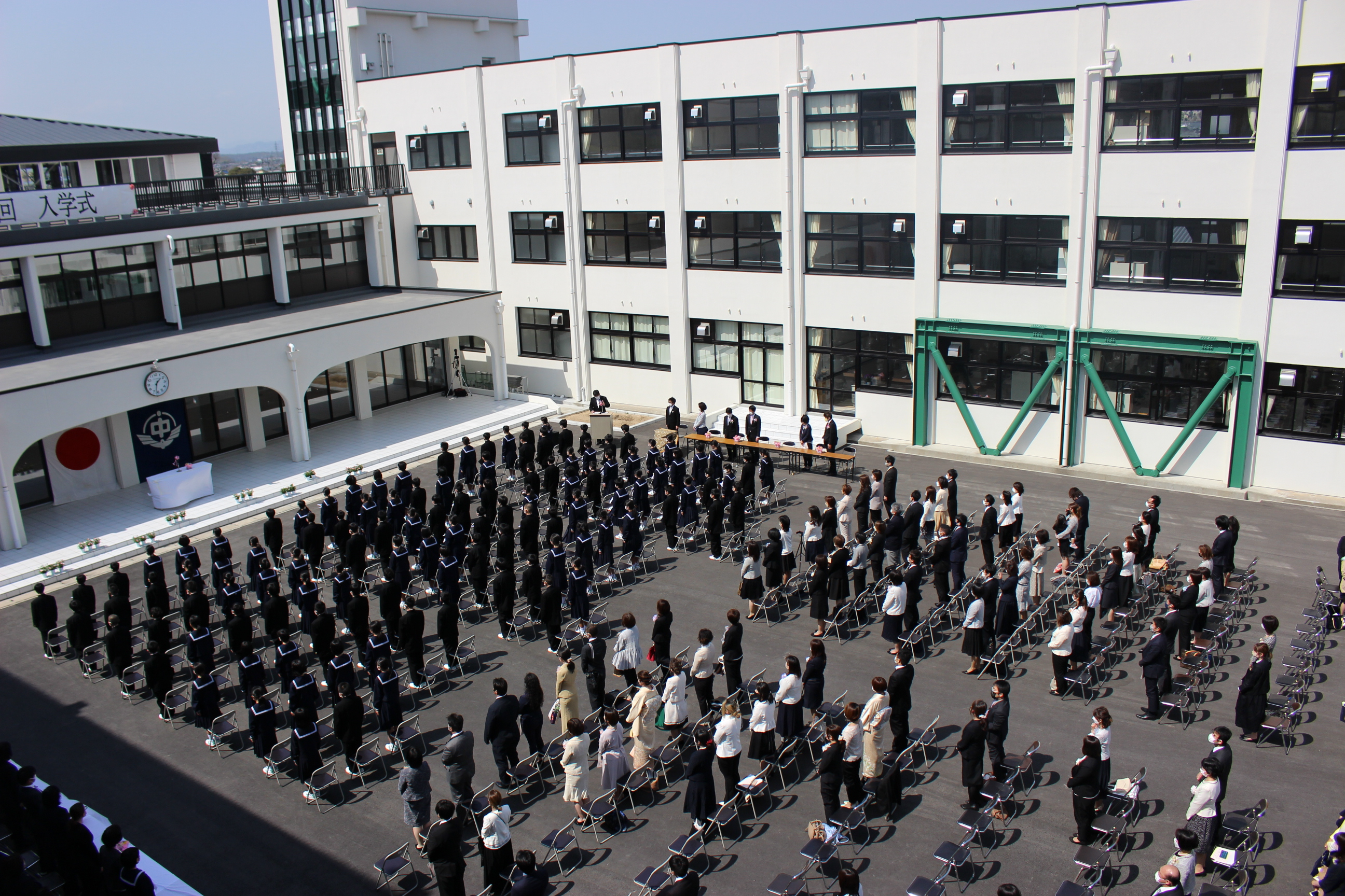 入学式 投稿日時 : 2022/04/15 システム管理者 体育館改修工事のため、中庭で行いました。入学式の様子を掲載しています。 詳しくは下の画像をタップしていただくか、こちら(pdf;101kB)をクリックしてください。