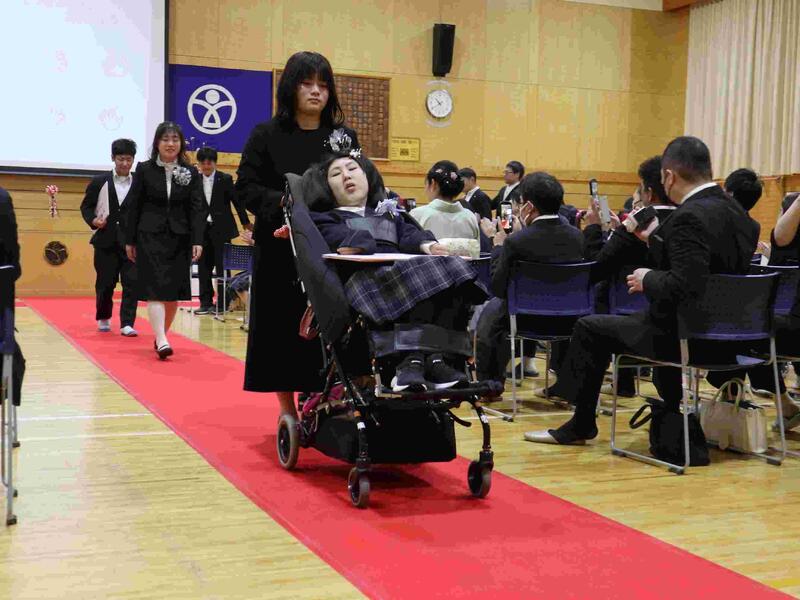 暖かい春の日差しの中、第51回卒業証書授与式を行いました。今年度は小学部2名、中学部9名の児童生徒が卒業を迎えました。保護者の方とともに、晴れ着に身を包んだ子どもたちが笑顔で登校してきました。