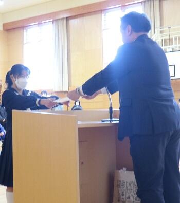 3/18㈪、小学部7名、中学部3名の計10名が、校長先生から卒業証書を授与されました。