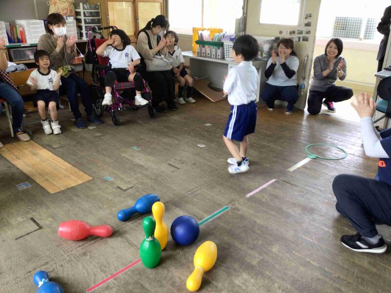 4月26日金曜日に今年度第1回目の学習参観日がありました。始まったばかりの学級ですが、学習にも徐々に慣れてきた様子が見られました。なんと言っても今日は、お母さん、お父さんと一緒。低学年では親子でボーリング等のあそび学習を楽しみました。勢いよく転がったボールが狙いどおり(?)ど真ん中へ。思わずガッツポーズ!