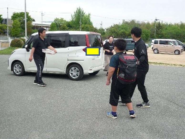 引き渡し訓練では、緊急時における児童生徒の安全確保と保護者・地域との連携をスムーズに行うための訓練をしました。事前に趣旨・手順の説明、防災メールの設定確認を行い、メールを受信した保護者の方から引き渡しを始めます。車の流れを考えた運動場利用の方法や受付場所での待ち時間に、車内で保護者確認の引き渡し票にサインをもらうなど混雑を最小限にしました。また、バギー等を利用する子どもの乗車場を別に設け、ゆっくりと安全に、安心して引き渡しができる配慮をしました。