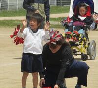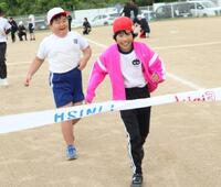 驚いたのは小学部新1年生。30m前方のゴールを目指して一直線。いやいや、支援の先生が傍らに