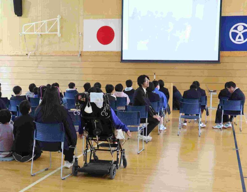 修了式では、頑張ったことや楽しかったことを振り返り、代表児童生徒が通知表を受け取りました。その後は、50周年に当たるこの1年間と、これまでの小野特の歩みをビデオで見ました。改めて、保護者の皆様やたくさんの地域の方々に支えられ、今の小野特があることに感謝します。校長先生の話では、なんと、みんなへのプレゼントがありました。大きな箱に入ったカラフルな積み木に、子どもたちの目もきらきらしています。「ありがとうございます。」と大喜びで受け取りました。