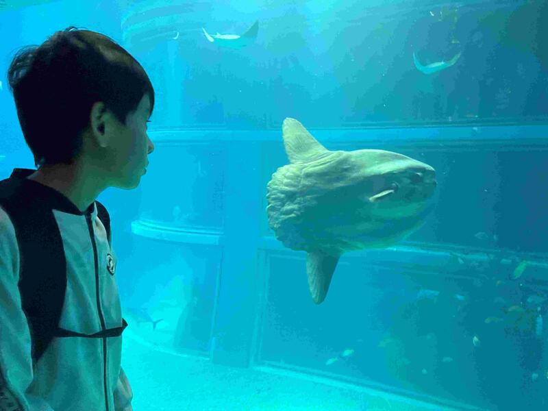 一日目はシャトルバス、電車と公共の乗り物を利用し、車窓の景色を楽しんだり切符のシステムを学んだりすることができました。二日目は、ほとんどの子が初めてという船に乗って海遊館へ向かいました。揺れる船への戸惑いもなく、10分間の船旅を楽しみました。暗い場所が苦手な子どもたちにとって、海遊館の暗さは少し不安に思っていましたが、キラキラ光る水面を下から眺め、ジンベイザメをはじめとした様々な魚・生き物たちの姿に、子どもたちの目は興味津々で、暗さも忘れて夢中で見つめていました。