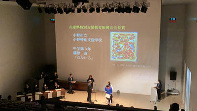 今年度は中学部3年生の藤原菖さんが「兵庫県特別支援教育振興会会長賞」を受賞し、小学部5年生の小塩春馬さんが「兵庫県教育委員会賞」を受賞しました。