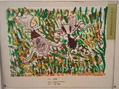 小塩さんの作品の題名は「足跡」。かぶと虫やクワガタムシの背景には、緑色や橙色の力強いタッチが描かれ、生き物の鼓動が聞こえてくるようです。