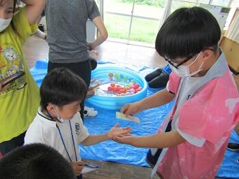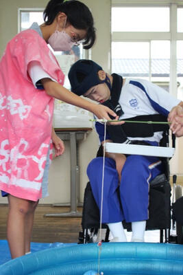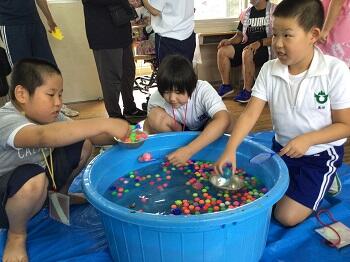 7月19日(火)の3.4時間目に、小野特『夏まつり』を行いました。中学部の生徒が企画し、出し物やチケットの準備・運営を行いました。小学部の児童は、お客さんとしてまわりました。くじ引き、的あて、輪投げ、スーパーボールすくい、ヨーヨー釣りの5種類の楽しい出し物に、笑顔いっぱいで楽しんでいました。素敵な夏の思い出になりました。