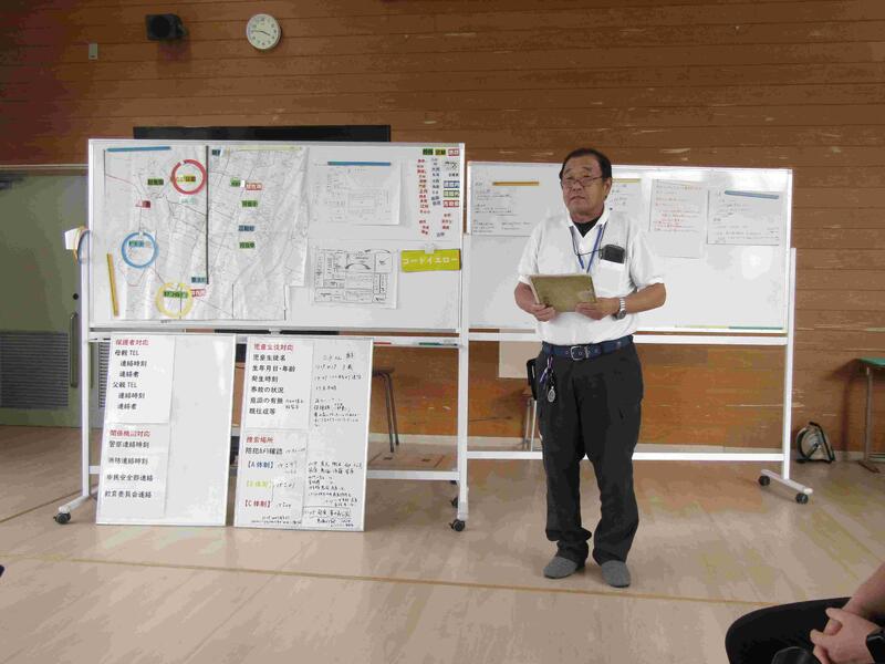 児童生徒が行方不明になったことを想定し、捜索訓練を行いました。本部、校内を捜す職員、校外を捜す職員、残った児童を見る職員に役割分担を行いました。