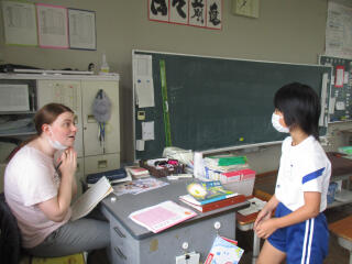 ALTのララ先生、岡部先生と楽しく英語の学習をしています。