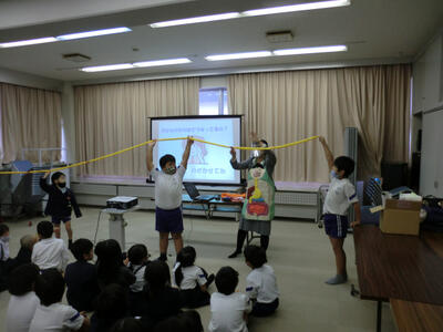 2年 お腹元気教室 投稿日時 : 2020/11/10 システム管理者 お腹元気教室があり、お腹と健康についてお話を聞きました。 腸の模型を見せてもらうと「腸ってこんなに長いんだ!」という驚きの声がたくさん聞こえてきました(^^ 普段は聞けないようなお話を聞けて、たくさんの学びがあったようです。
