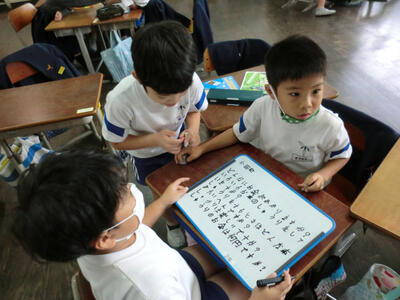 2年 図工、町探検準備 投稿日時 : 2020/10/19 システム管理者 図工では、ハロウィンにちなんでカボチャの絵を描いています! 町探検に向けて、班毎に質問を考えています! 班の名前や守るべきルールなどを決め、楽しく安全に自分たちの生活する町について学んでほしいと思います!