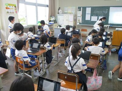 パソコン室でローマ字練習ができるアプリを使って、学習をしました。中々クリアできず、苦戦していました。徐々に慣れていき、機会を上手に使いこなせる子どもたちになってほしいと思います。