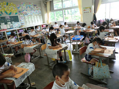 2年 似顔絵 投稿日時 : 2020/07/09 システム管理者 2年生の身長よりも大きなひまわりが学校中に咲き始めました! 図工で似顔絵を描きました。ぼかしを使ったりと色を混ぜたりと 上手な絵が描けましたね!