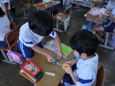 2年 七夕にむけて! 投稿日時 : 2020/07/02 システム管理者 七夕に向けてちょうちんやミニ天の川などを折り紙で作りました! 休み時間に遊具でチャレンジというものをしています。 うんていやのぼり棒などの楽しい企画を5、6年生が考えてくれました!