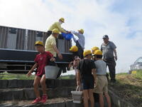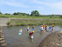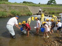 【3年】環境体験学習(あゆの放流) 投稿日時 : 2023/06/20 情報担当 令和5年6月20日、環境体験学習の一環として、加古川漁協の皆さん、市民安全部の皆さんのお世話になり、東条川でのあゆの放流を行い、地域の水辺の自然について考える学習をしました。稚鮎を見ながら、「かわいい。」「元気だなあ。」「大きくなってね。」など、水辺の生き物への愛着や地域の自然の大切さを実感して学びました。川遊びも貴重な体験となりました。
