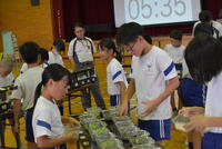 7月10日にダイハツ工業の方々をお招きして、「ダイハツものづくり体験教室」を行いました。自動車の製造工程であるプレス、溶接、組み立て、塗装を体験しました。また、レゴブロックを使って「流れ作業」で車が完成していく仕組みや、部品を効率よく供給する「ジャストインタイム方式」も学習しました。自動車工業に携わる方々のものづくりに対する熱意にふれ、子どもたちはものづくりの大切さを実感しました。