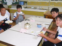 5年生のときに実習した「お茶の入れ方」も復習し、給食前に見事な料理が完成しました。