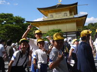 金閣寺では写真を撮るのも一苦労。本日も最高に天気もよく、きらきら光り輝いていました。