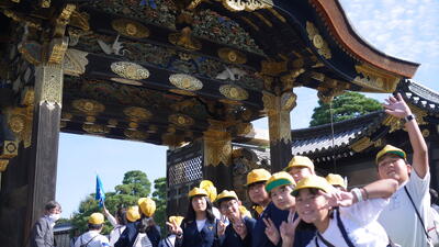 続いて向かった先は二条城。家紋に注目しながら、うぐいす張りの音に耳を澄ませました。