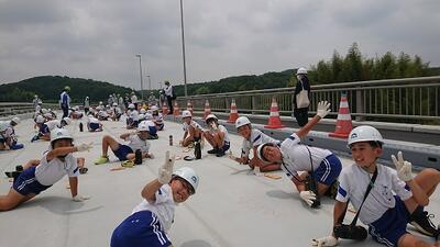 橋梁見学 投稿日時 : 2022/07/01 システム管理者 小野藍本線バイパスの橋梁工事現場見学に行ってきました。 記念に橋にクレヨンで思い思いの絵を描くという事で、みんな大喜び。 一体、何を描いたのでしょうか。 最後に、みんなで記念写真を撮りました。 完成したら、是非わたってみてください^^