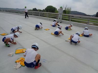 6月20日にバスに乗って橋梁工事見学に行き、橋の上で絵を描きました。
