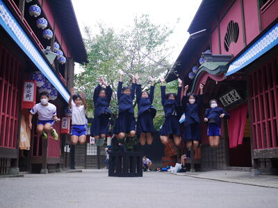最後に向かうは映画村。子どもたちにとってNo1の楽しみスポットです。