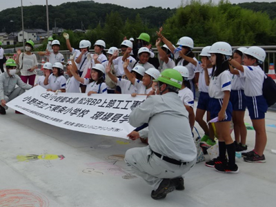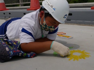 橋梁見学 投稿日時 : 2022/06/30 システム管理者 6月20日、橋梁見学に行きました。 新しく完成する橋に、クレヨンで絵を描きました。 なかなかできない貴重な体験をさせていただきました。 暑い中でしたが、楽しそうに絵を描いていました。